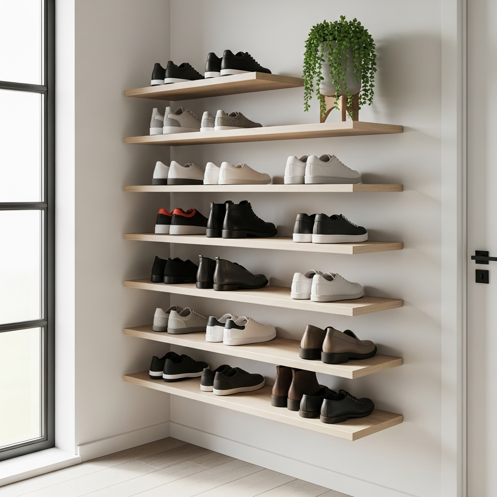 When floor space is limited, your walls become your best friend. Vertical storage is one of the most effective ways to keep shoes organized without taking up precious walking area.