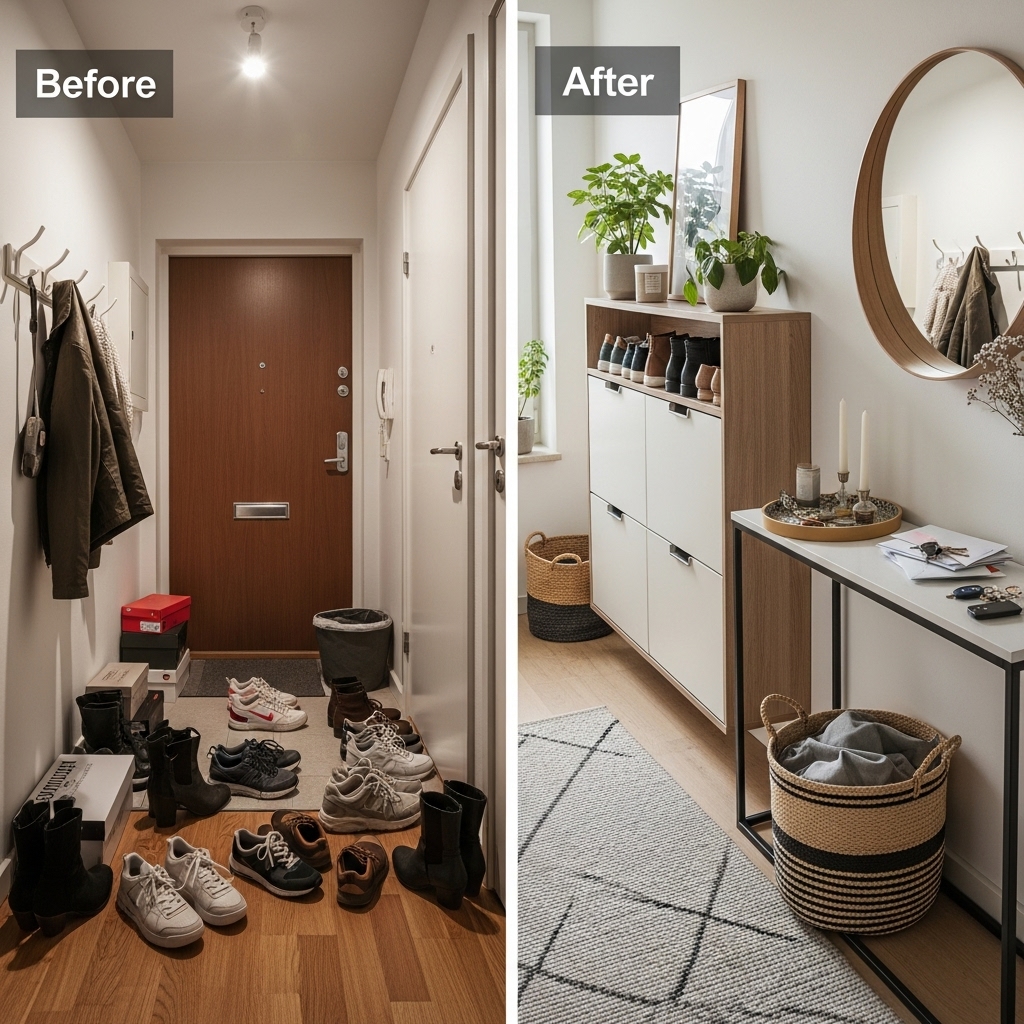 With the right storage approach, even a cramped entry can feel spacious and intentional.