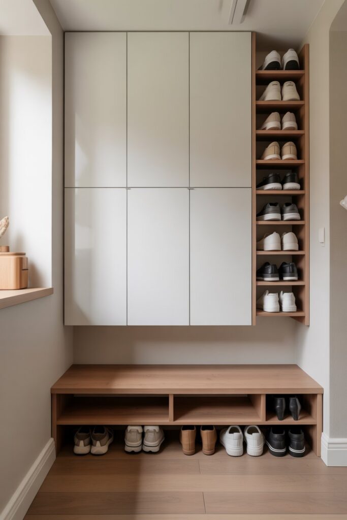 Hidden solutions like these are perfect for maintaining a clean, clutter-free entry, especially when using Entryway Shoe Storage Solutions for Small Spaces that favor sleek, seamless design.