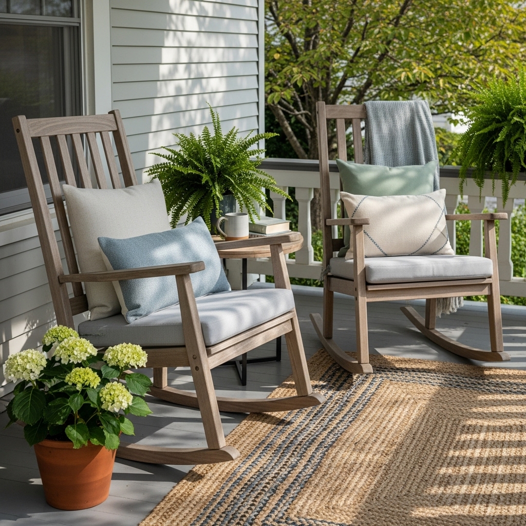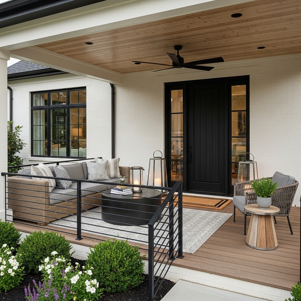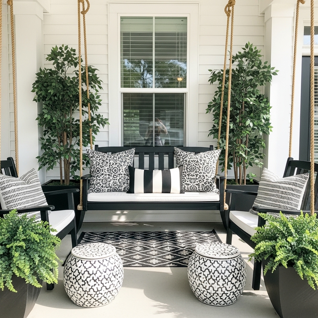 One simple trick designers use is mixing materials to create depth and interest. This can make your porch look professionally styled.