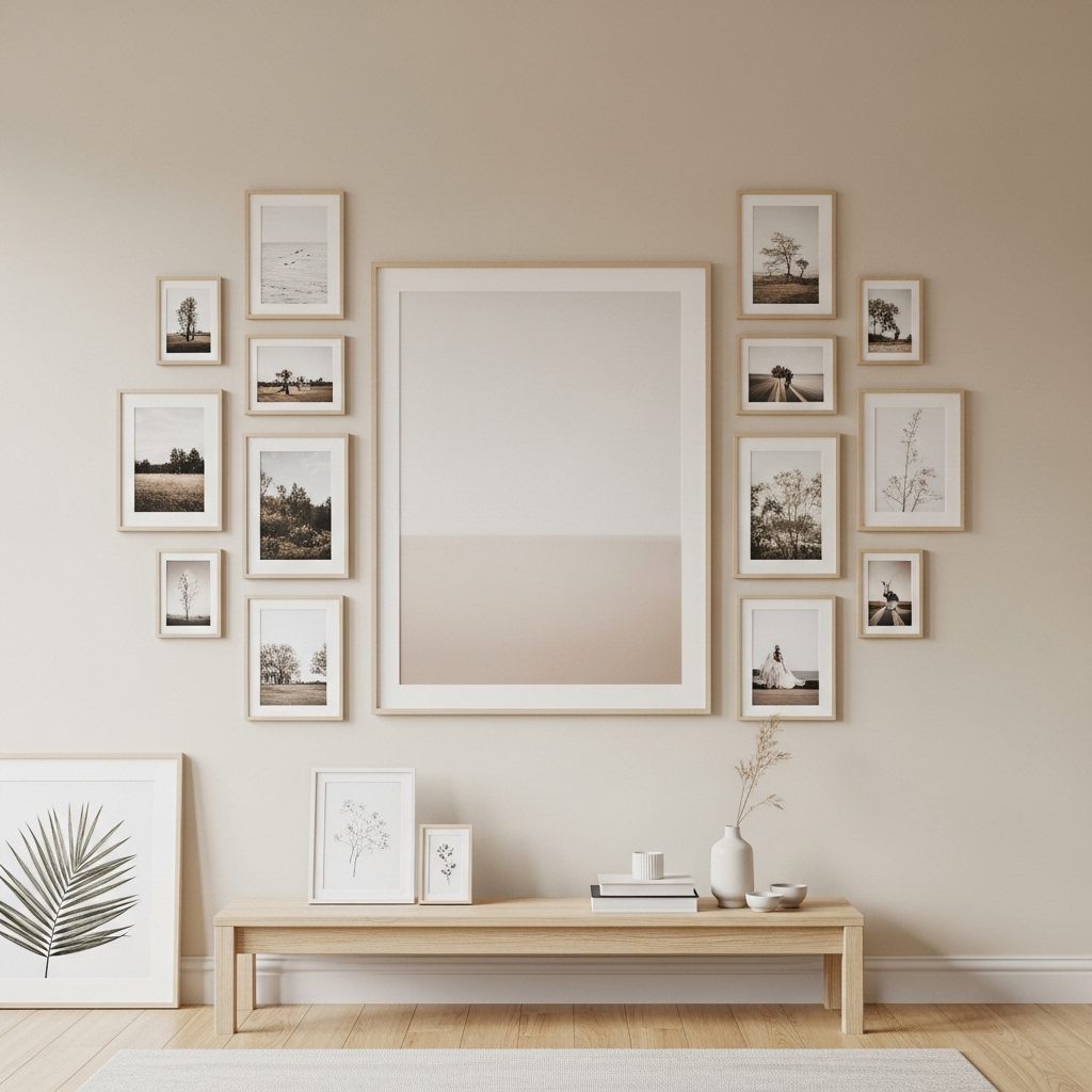 - Scale proportionally: larger walls allow bigger frames and more generous spacing; small walls demand tighter, smaller arrangements.