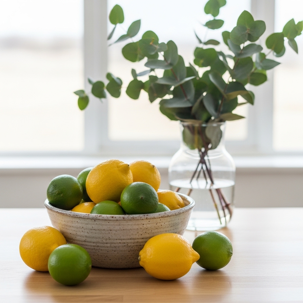 A simple bowl of lemons, limes, or apples works as both a snack station and a natural pop of color.