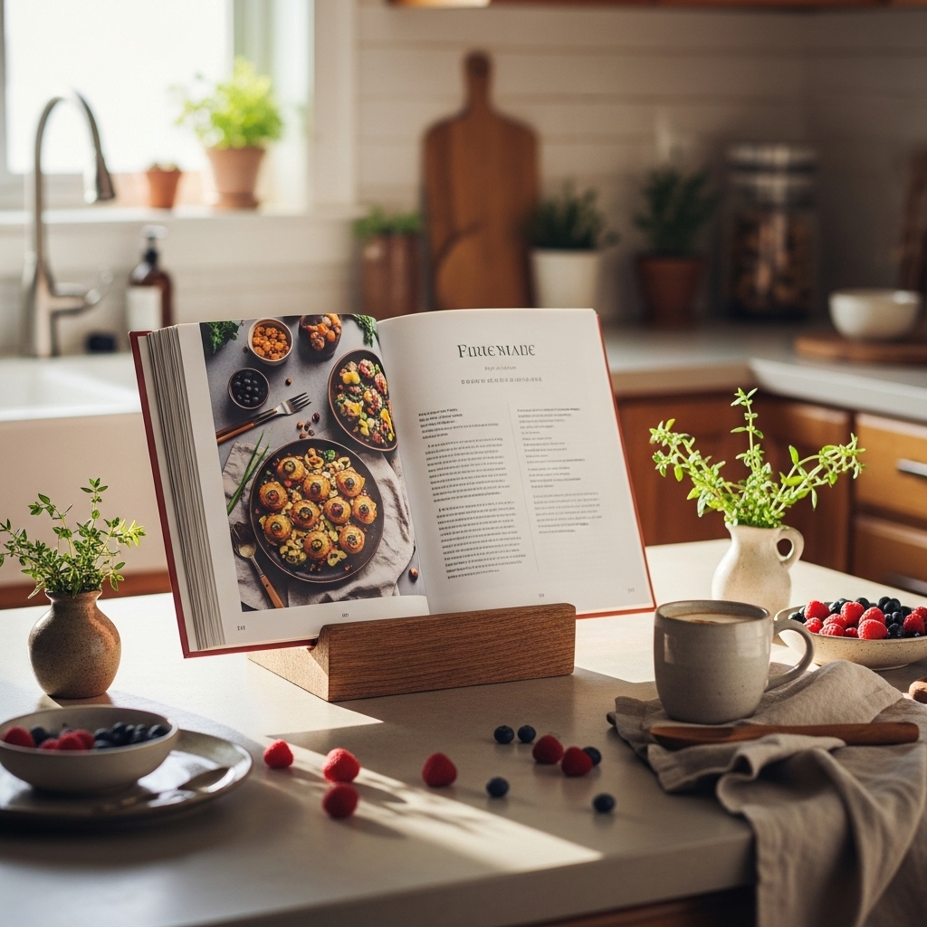 Open your favorite cookbook on a stylish stand. It’s practical and doubles as a design element.