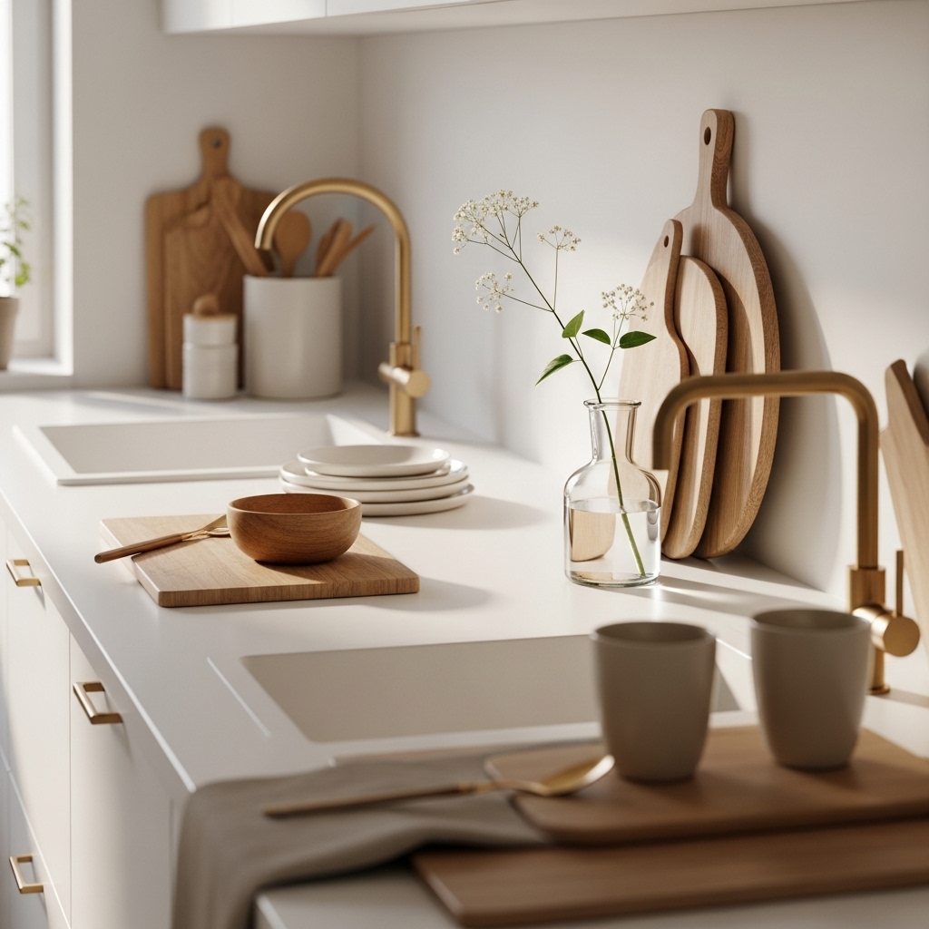 Above all, don’t overcrowd. Counters should feel airy, not crammed. Select a few well-chosen pieces for a balanced look.