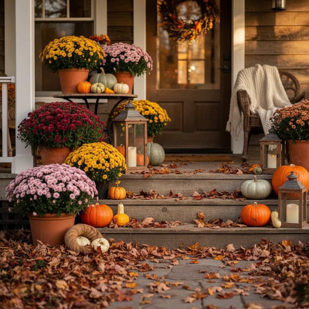 - Mixed Plantings: Pair mums with ornamental kale, pansies, or pumpkins for a true autumnal display.