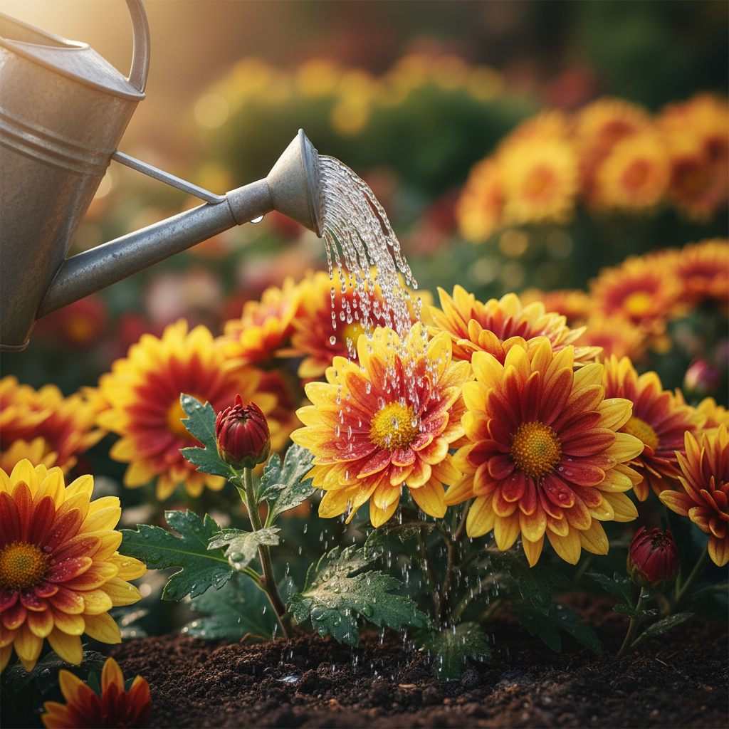 Water is essential for mums, especially during dry autumn spells. Keep the soil consistently moist but not soggy. Water at the base of the plant to avoid wetting the leaves, which can encourage disease.