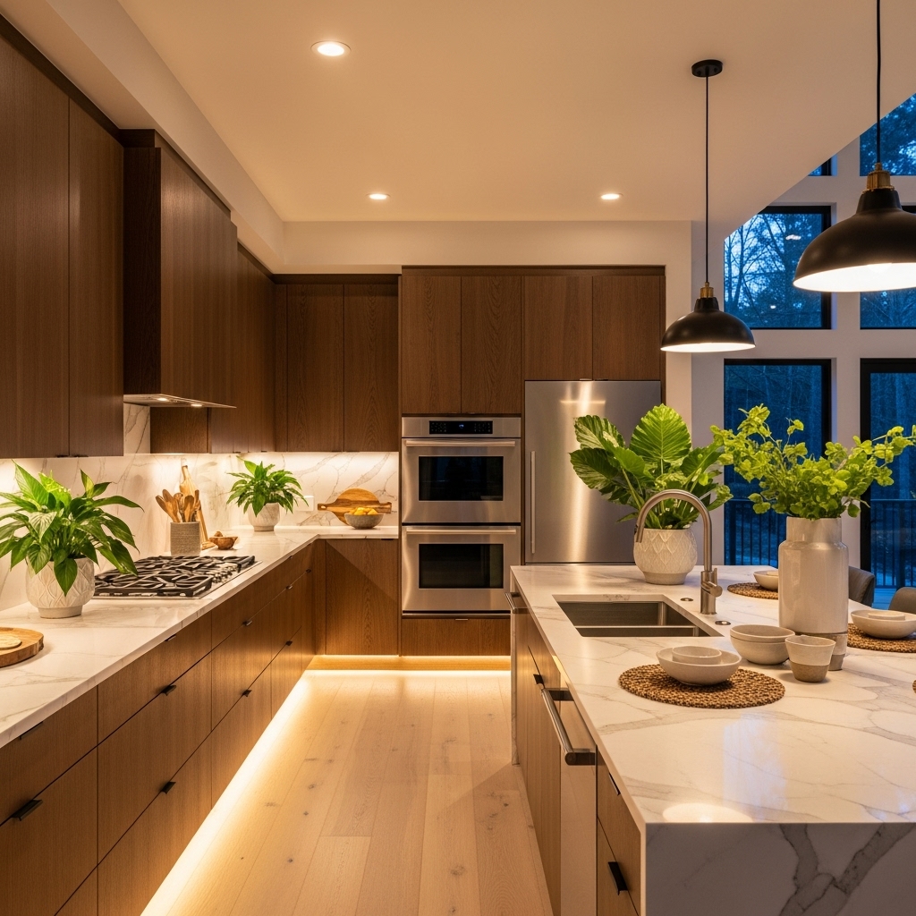- Metal finishes: A touch of gold, black matte, or stainless steel in small doses can add sophistication.