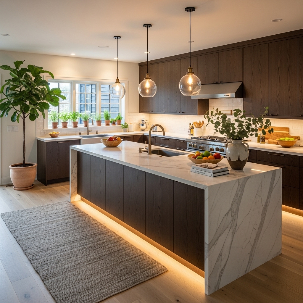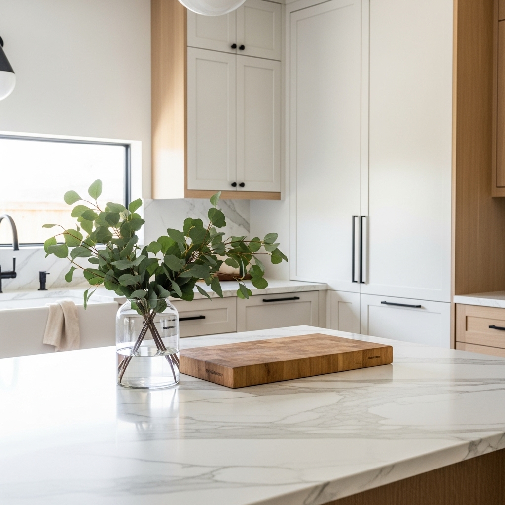 - Wood and stone: A marble countertop with a wooden cutting board feels warm and balanced.