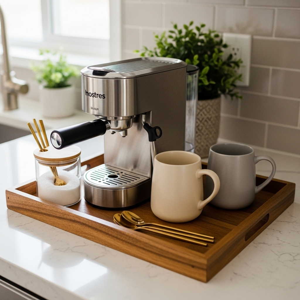 By choosing items that are both useful and attractive, you maintain a clutter-free yet inviting countertop.