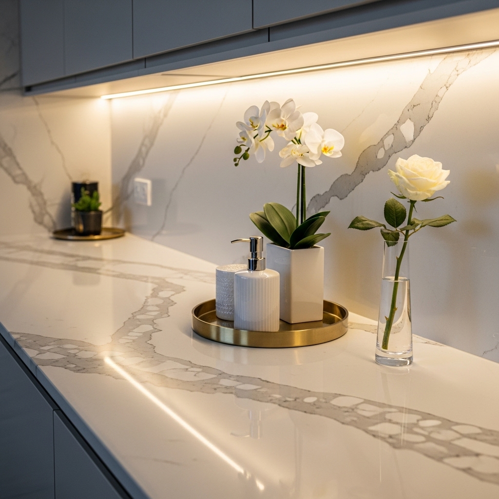 This visual rhythm ensures your countertop feels harmonious but still dynamic.