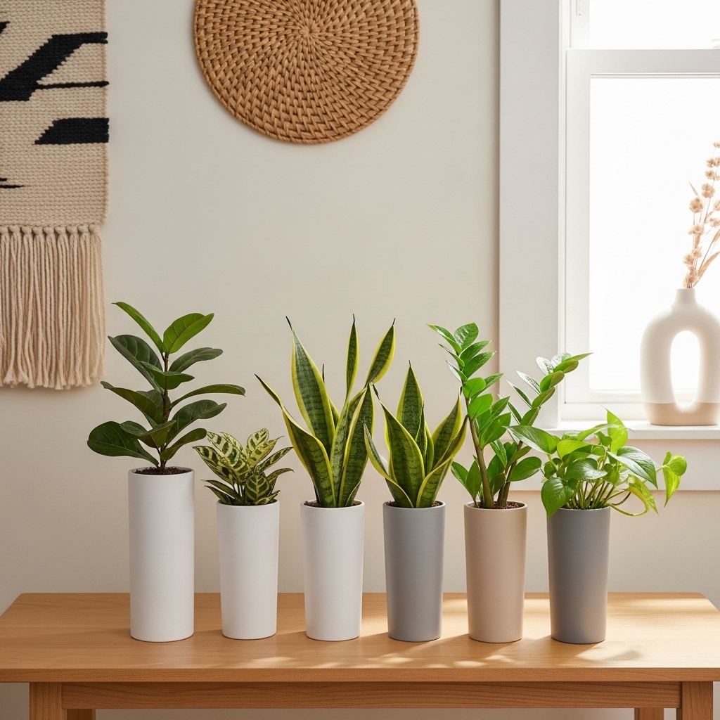 These plants tolerate low light and infrequent watering, making them ideal for apartments and small homes.