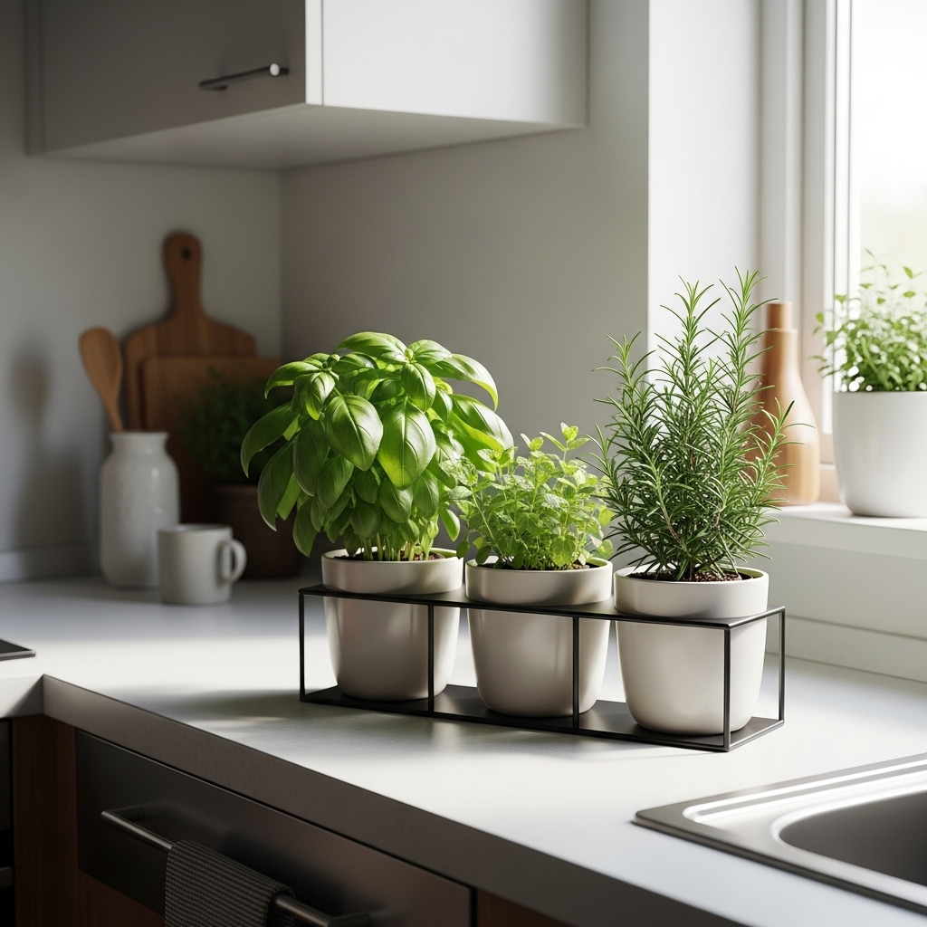 Fresh herbs add flavor, fragrance, and greenery—making your kitchen feel alive without crowding it.