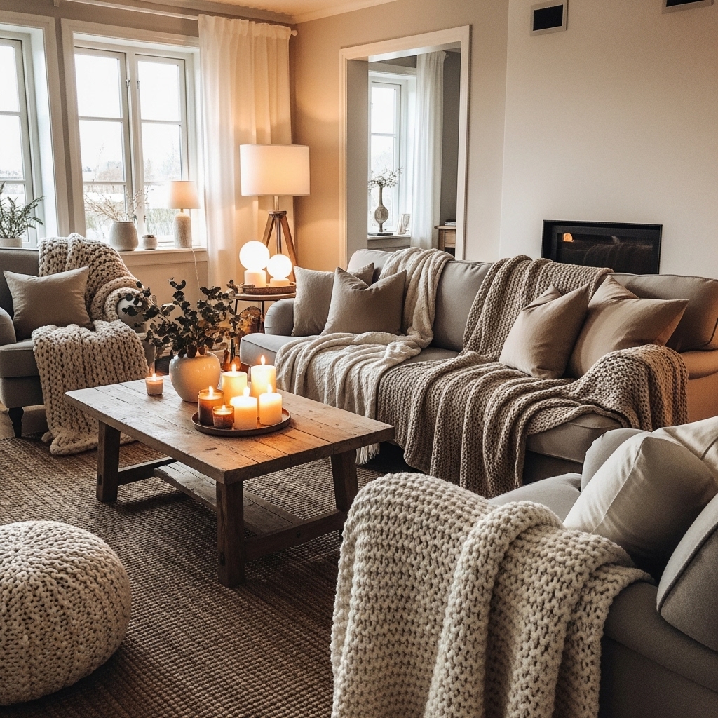 While the goal is to keep your living room light and airy, it should also feel cozy and lived-in. Add warmth through soft lighting, gentle fabrics, and personal touches.