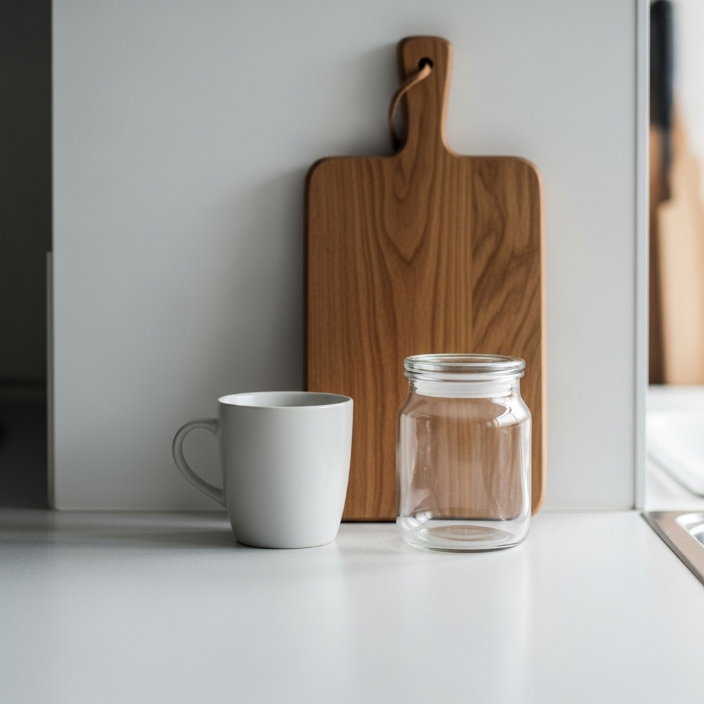 Only bring back items that earn their place. This single habit is the foundation of minimal kitchen counter styling Minimal Kitchen Counter Styling Ideas.