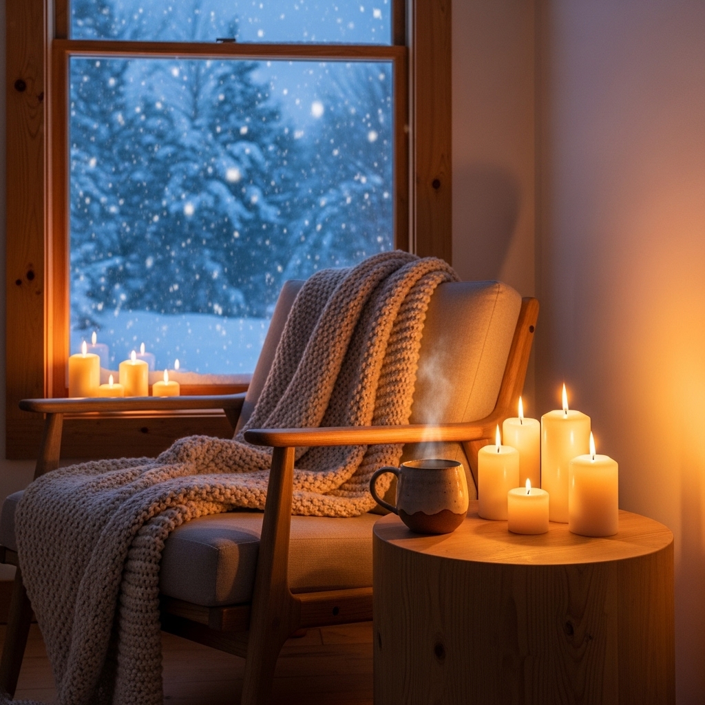 Winter light can be soft and fleeting. Use it to your advantage by adding sheer curtains, mirrors, and warm ambient lamps. Candles in glass or ceramic holders add a magical glow that enhances coziness.