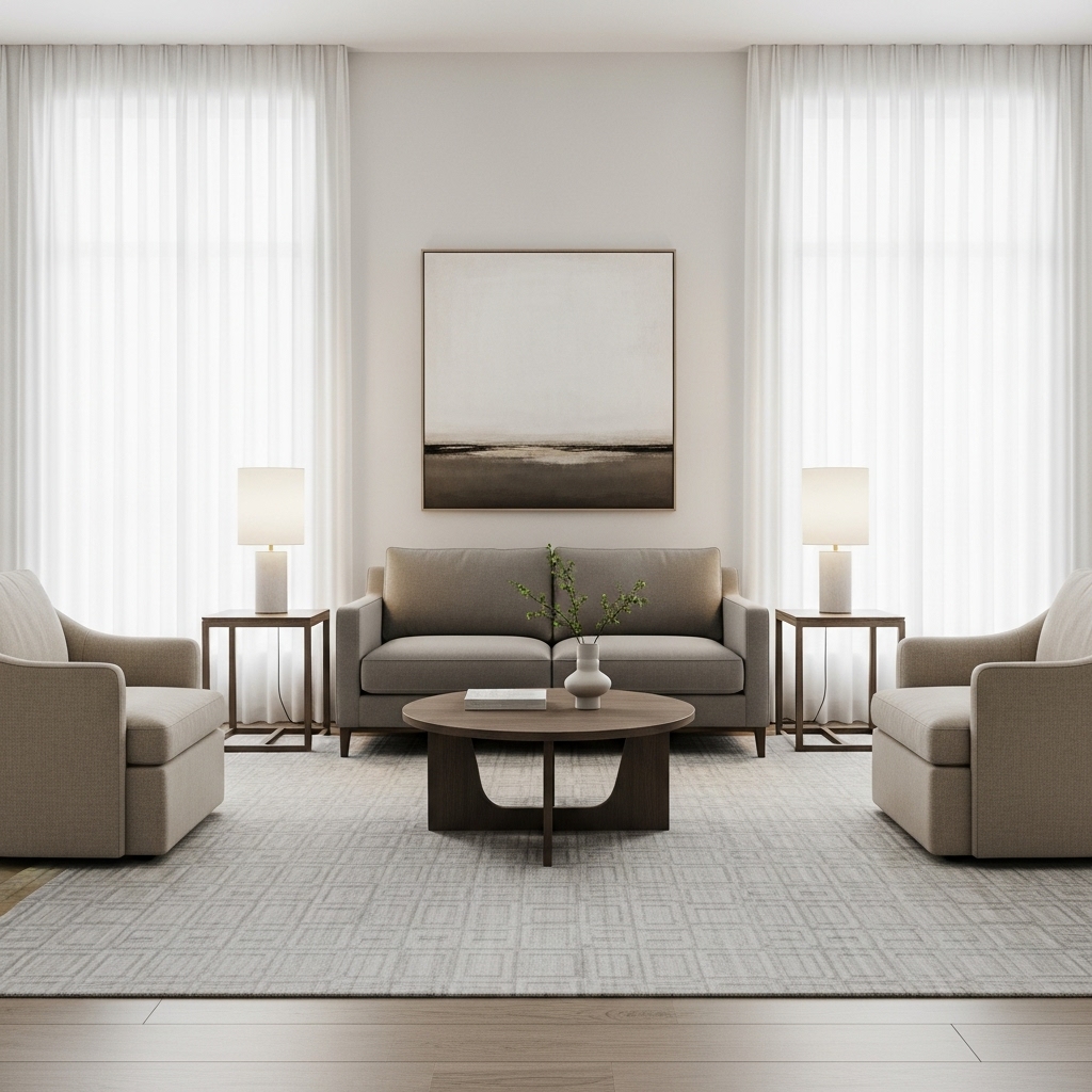 A low-profile sofa, a sleek coffee table, and a simple armchair are often all you need. Opt for furniture that sits slightly off the ground—it creates a sense of openness and flow.