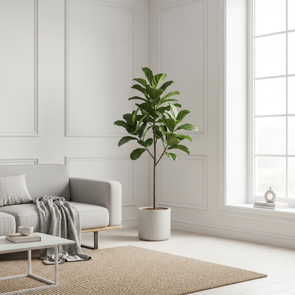 Choose low-maintenance plants like snake plants, fiddle-leaf figs, or pothos. Stick to one or two plants rather than filling every corner. A single statement plant can be more impactful than several small ones.