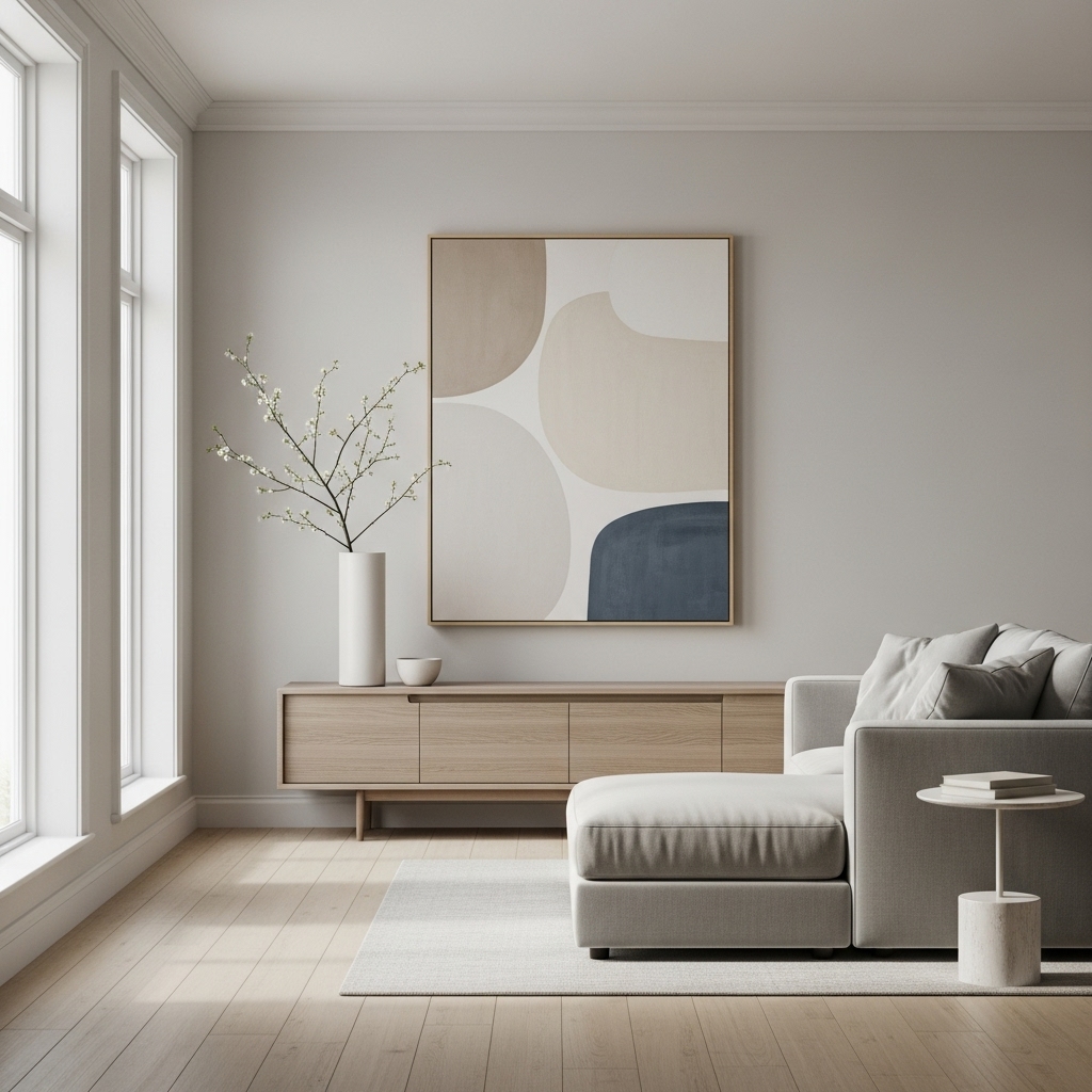 Color sets the emotional tone of a room. Minimalist living rooms often rely on neutral shades like white, beige, soft gray, or warm taupe. These colors reflect light beautifully and instantly make a space feel open and airy.
