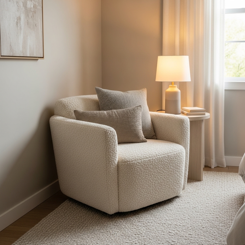 - Bouclé or sherpa accent chair