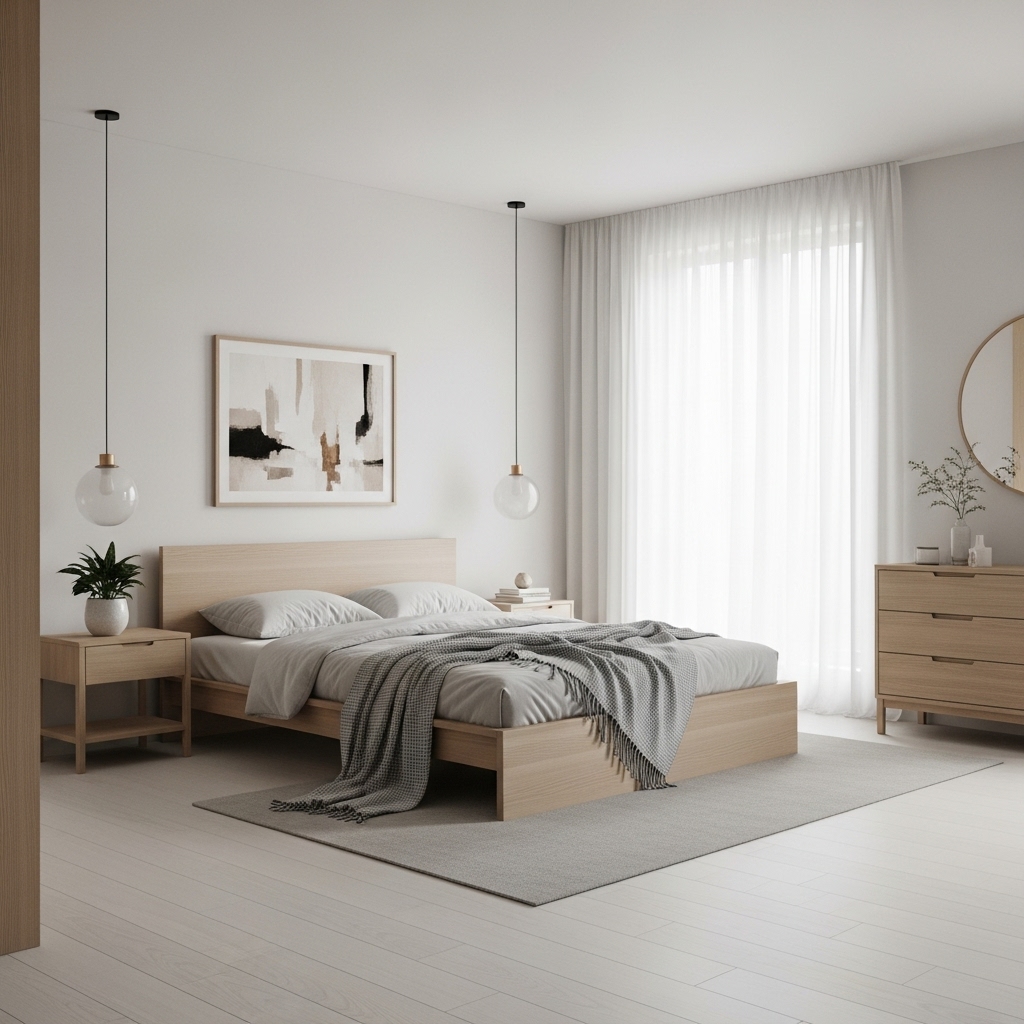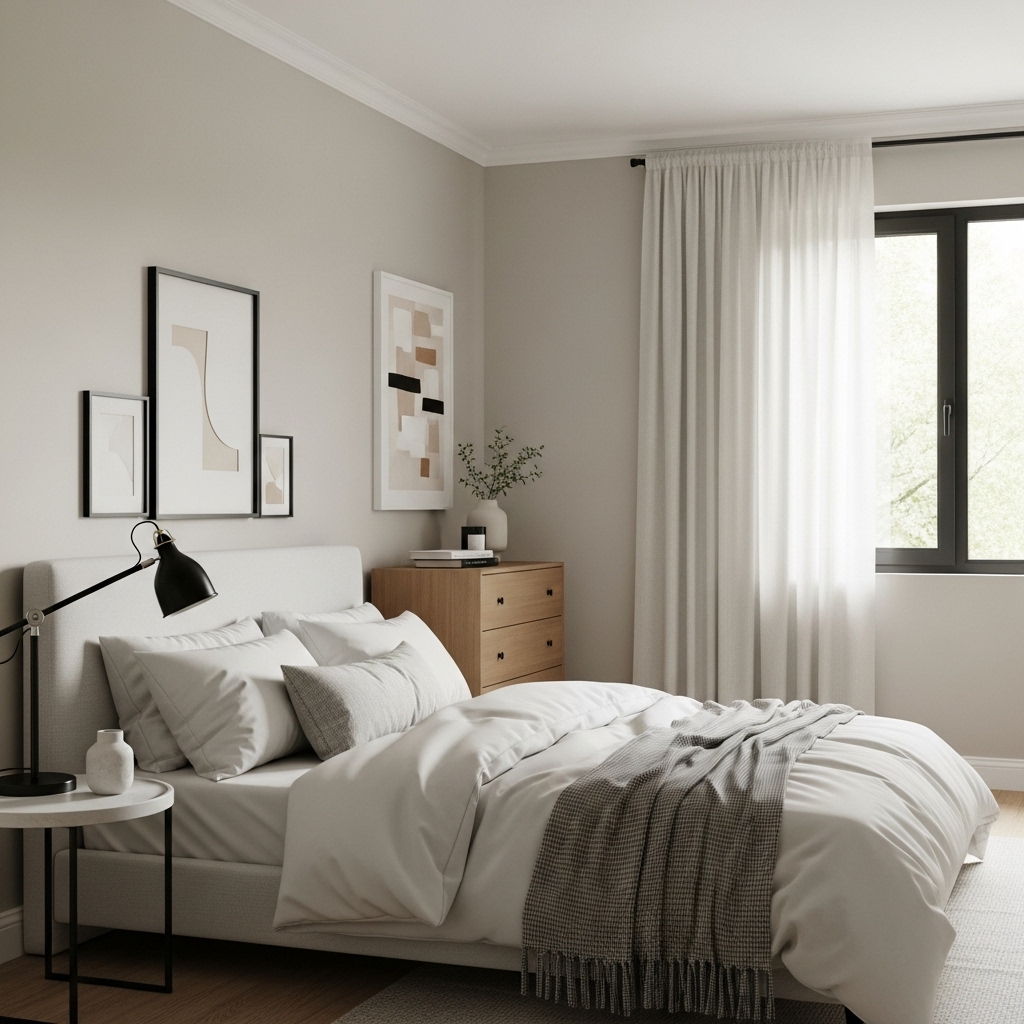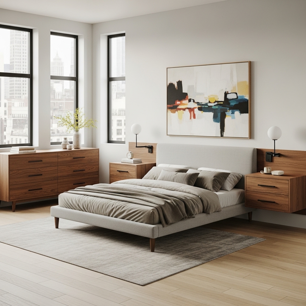 Your color palette sets the tone for the entire room. Modern bedrooms often lean toward grounded, muted tones that create an effortlessly elegant environment.