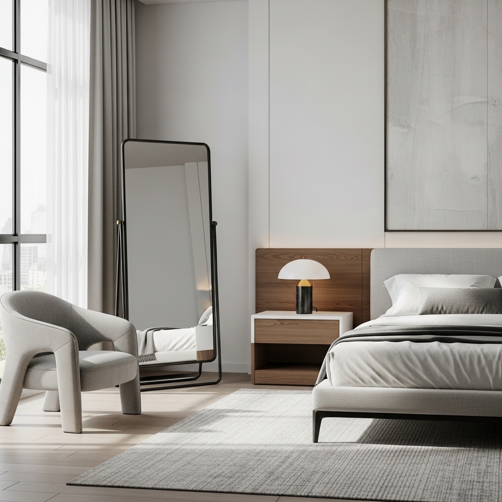 Mirrors are a designer favorite for modern bedroom decor because they reflect light and make the room feel larger. Choose mirrors with sleek, modern frames such as black metal, brass, or frameless glass.