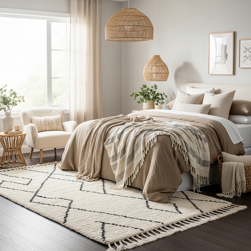 - Layered bedding for dimension, warmth, and softness