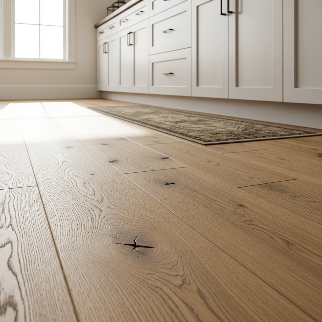 Choose medium to dark stains for warmth, or go with lighter wood tones to keep the space bright and airy. Textured finishes, like wire-brushed oak, add authenticity and durability.