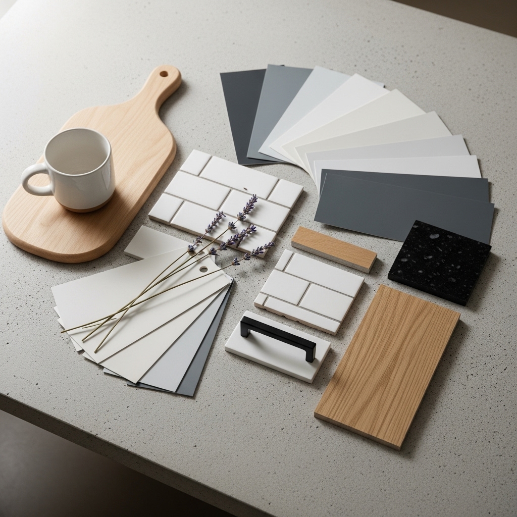 White is a favorite choice for cabinetry and walls — it brightens the space and creates a clean backdrop for other materials to shine. Pair it with soft grays, muted greens, or creamy beige for a cozy balance.