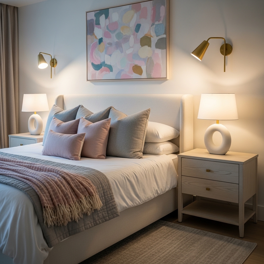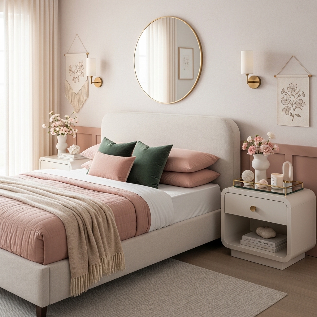 Modern feminine bedrooms rely more on texture than busy patterns. Texture adds depth and warmth without overwhelming the space.
