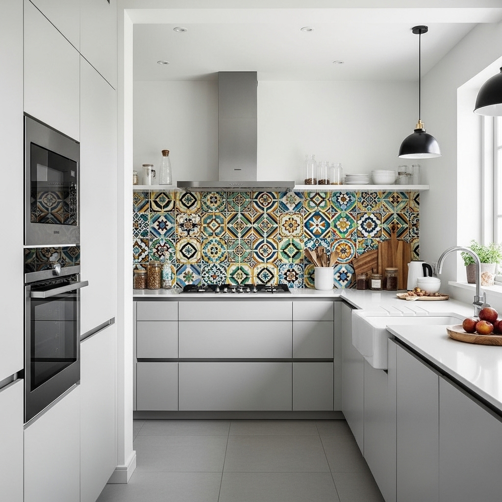Bold patterned tiles, including Moroccan, geometric, or encaustic designs, are trending for those who want a more playful, artistic kitchen. They create a focal wall behind the stove or sink, instantly elevating the aesthetic of your space.