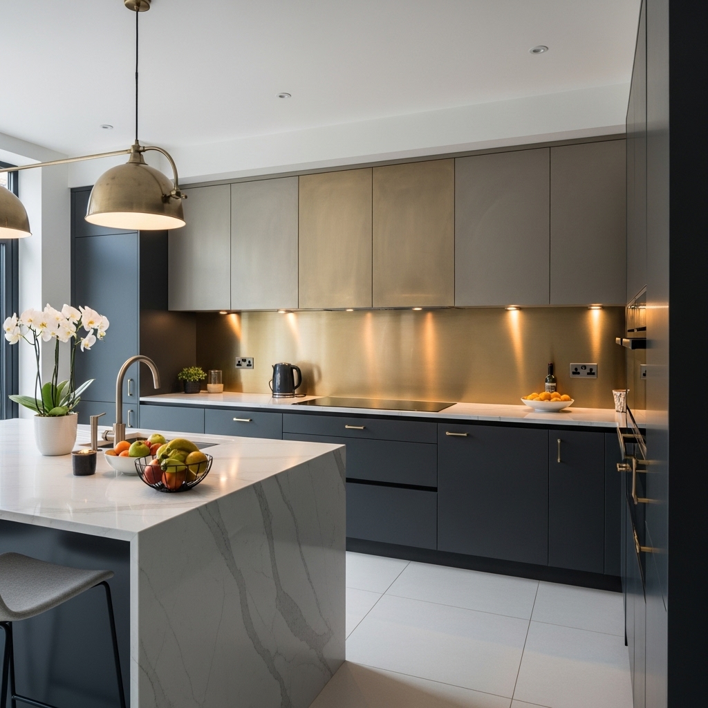 Metallic tiles or panels, particularly in brushed gold, copper, or stainless steel, are gaining popularity for adding a touch of glamour. They pair beautifully with industrial and contemporary kitchens and reflect light to enhance the overall ambiance.