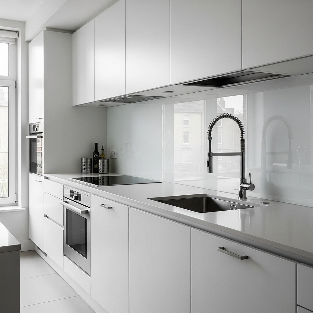 Glass backsplashes are perfect for a sleek, high-end look. They reflect light, making your kitchen appear brighter and more spacious. Available in clear, frosted, or colored glass, these backsplashes are also easy to clean, making them both stylish and practical.