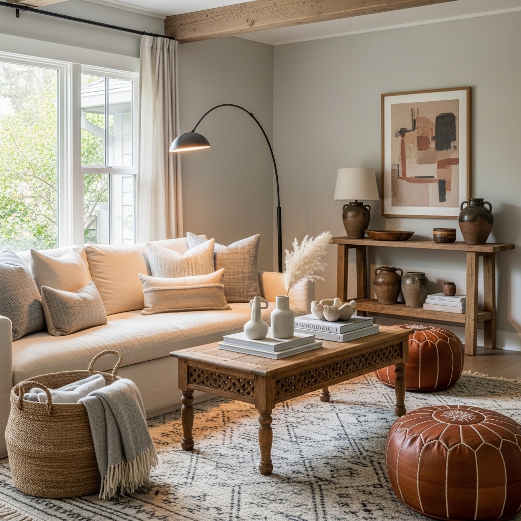 Texture is one of the most powerful tools in modern rustic design. When done right, it turns an ordinary living room into a warm, visually engaging retreat.