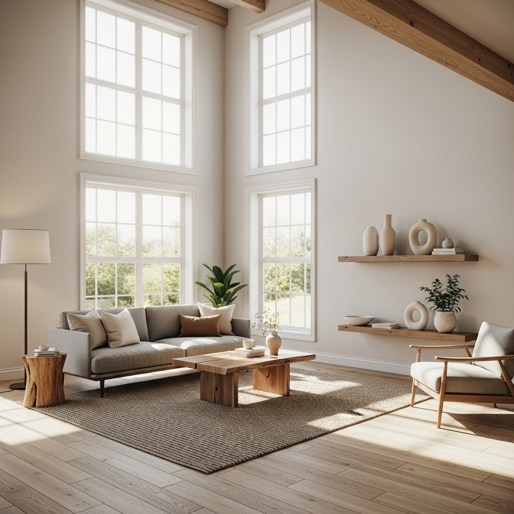 Start With a Warm, Neutral Color Palette Modern Rustic Living Room Decor
