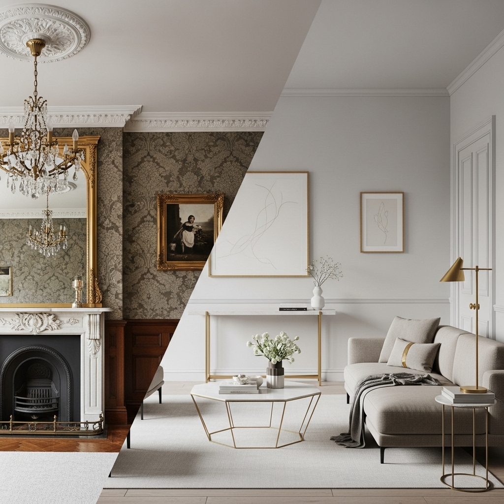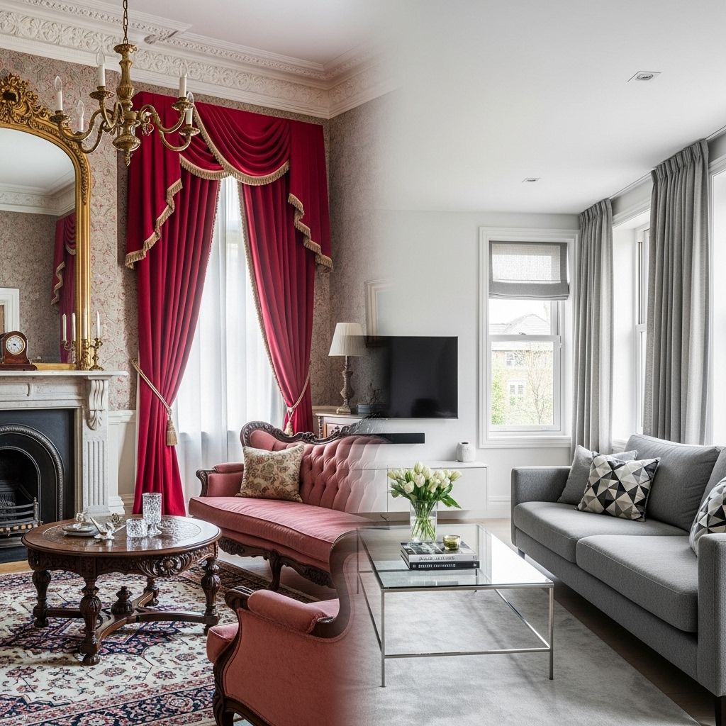 Victorian style loves texture—think velvet, lace, silk, carved wood, marble, and metal. Modern design balances this richness by keeping lines cleaner and layouts more open, so the textures feel curated rather than crowded.