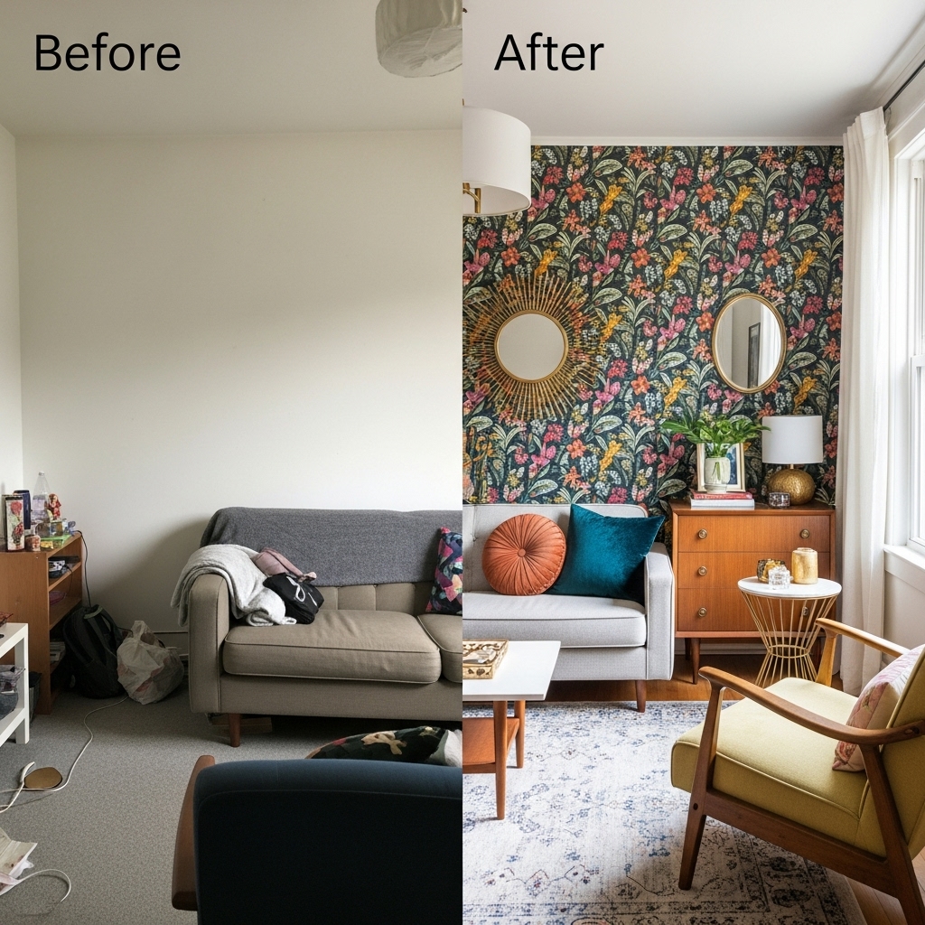 Start small by introducing Victorian-inspired elements like decorative mirrors, velvet pillows, or metallic accents. Peel-and-stick wallpaper or temporary wall molding kits can transform a space without permanent renovations.