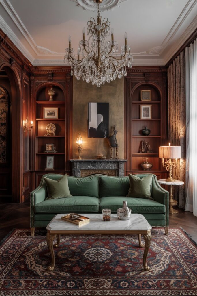 Instead of filling a room with many heavy pieces, modern Victorian decor focuses on a few standout items. A velvet tufted sofa, a carved wood coffee table, or an upholstered accent chair with curved legs can anchor the space.