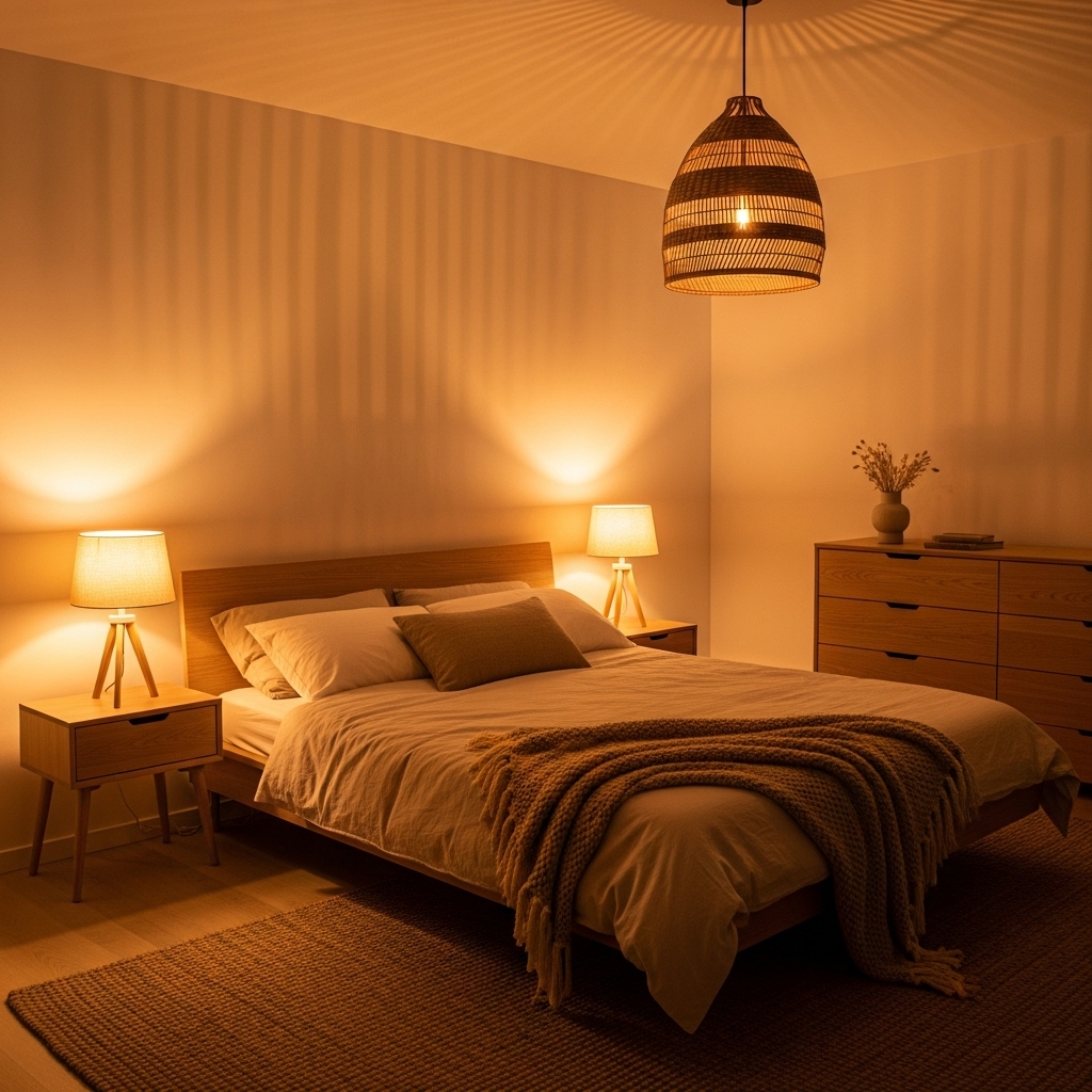 Use warm white bulbs (2700K–3000K) to avoid cold, clinical tones. The gentle amber glow works beautifully with neutral hues, creating that dreamy, serene environment.
