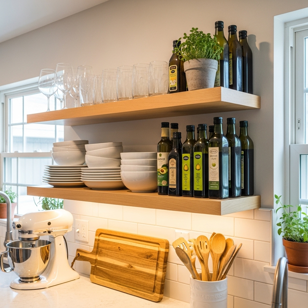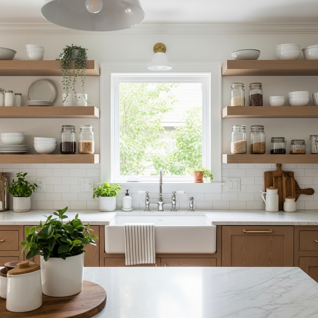 The key is restraint. When you focus on simplicity, functionality, and cohesion, open shelves can elevate your kitchen into a space that feels modern, inviting, and effortlessly organized.