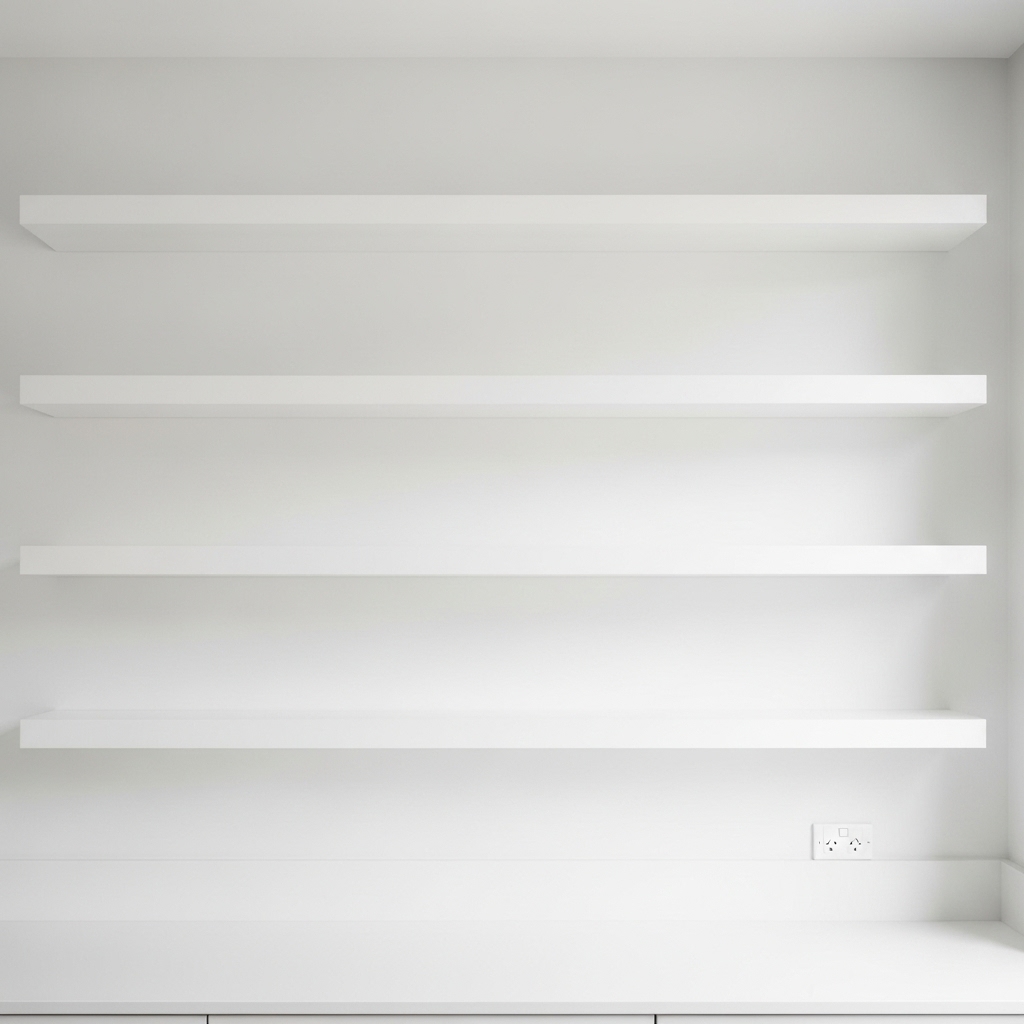 Clean design is often about symmetry. Even spacing between shelves creates a calm, architectural look.