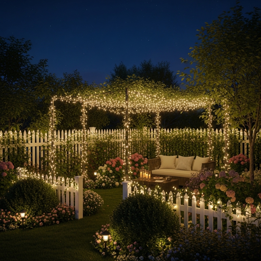 If your outdoor space includes a fence or privacy wall, use it to your advantage by draping string lights along the top or weaving them across the surface. This enhances the vertical space while increasing ambient lighting without overwhelming brightness. It’s a great way to soften harsh lines and add a decorative touch to often-neglected backyard areas.