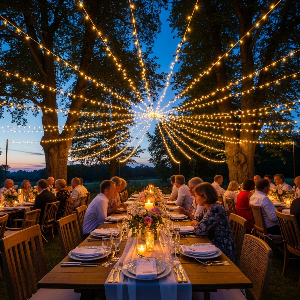 Outdoor string lights aren’t just for hanging—they can also illuminate walkways, garden paths, and driveways. Use low-lying stakes or shepherd’s hooks to hold lights in place, guiding guests safely while adding charm. This is especially useful for large yards or nighttime gatherings. The gentle glow creates a magical walkway that feels like stepping into a storybook setting.