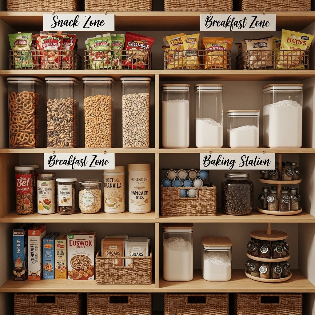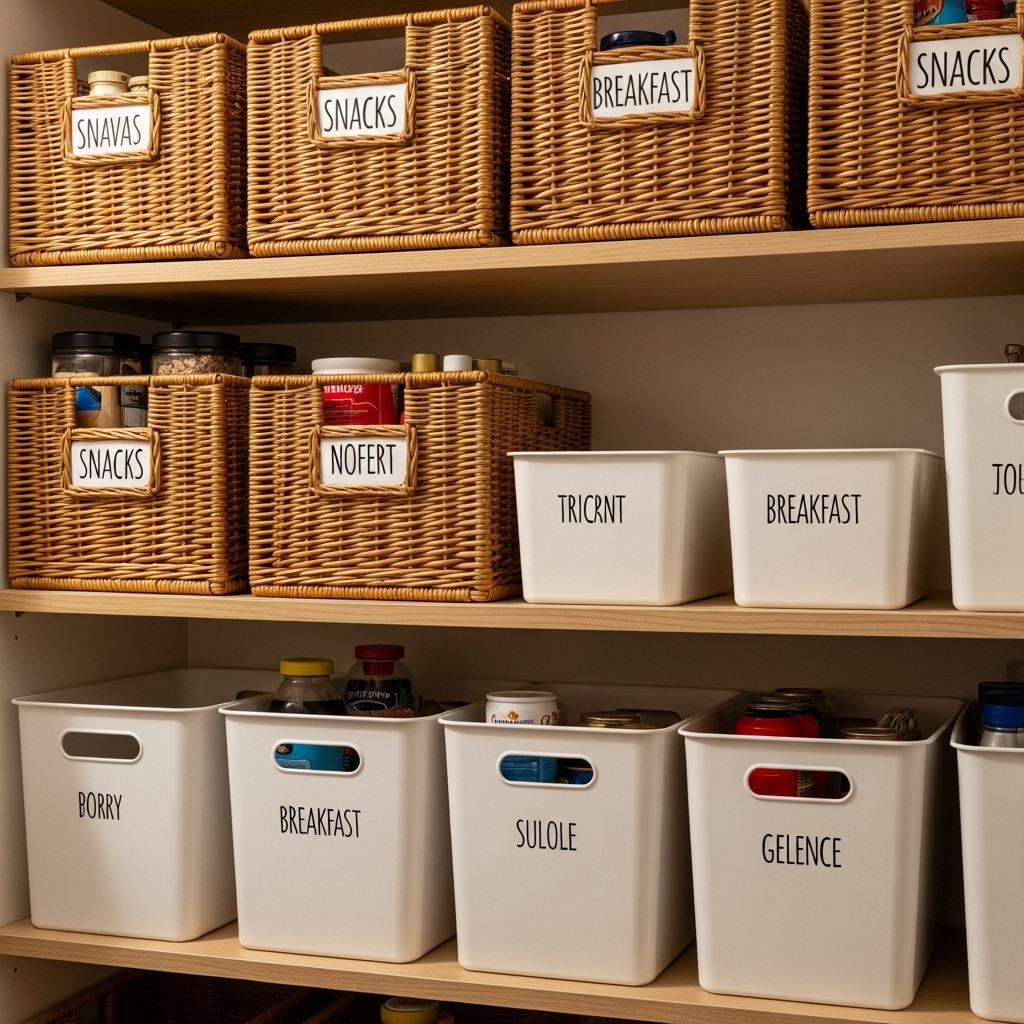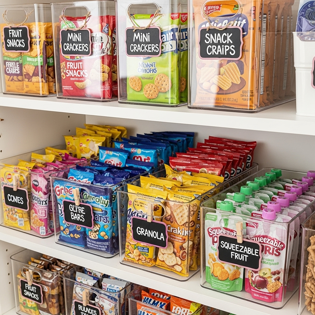 🧺 Breakfast bins for oatmeal, granola bars, and cereals