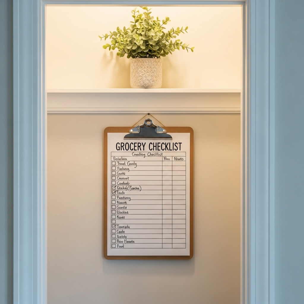 Keep a clipboard or dry-erase board nearby where you can jot down items as they run out—flour, rice, favorite snacks. This ensures smart grocery shopping and keeps your beautiful pantry stocked at all times.