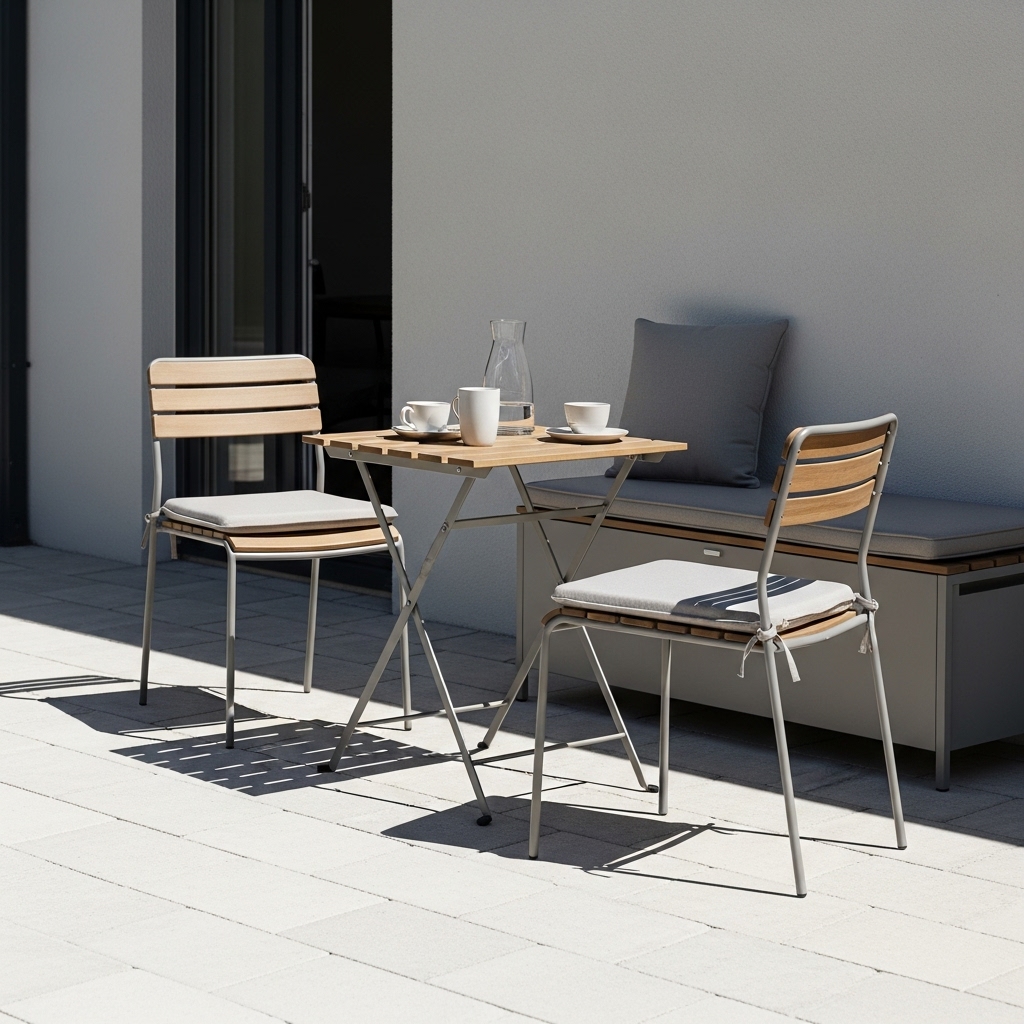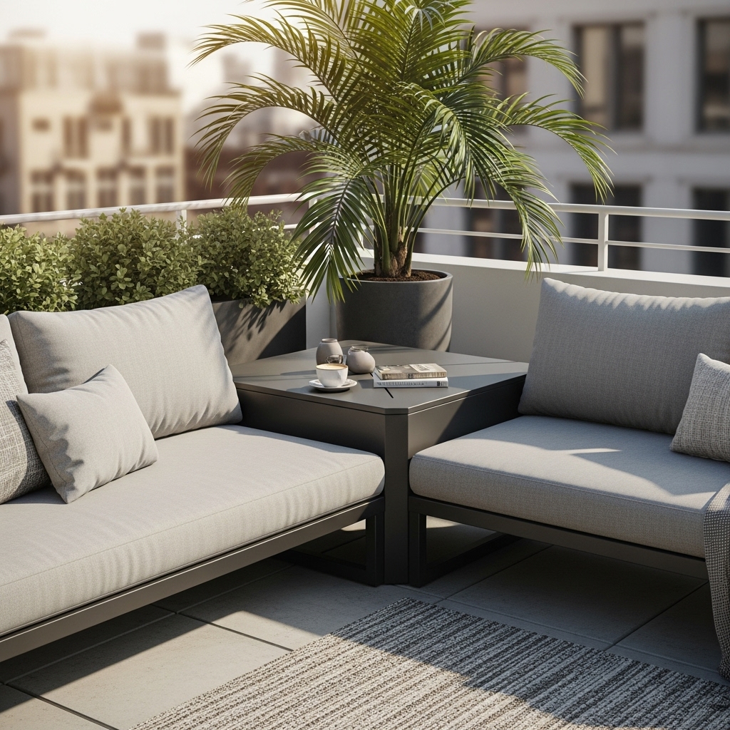 Before arranging anything, it’s important to choose furniture that fits your scale. Oversized furniture will overwhelm a small space, while compact, multi-functional pieces can make your patio feel spacious and flexible.
