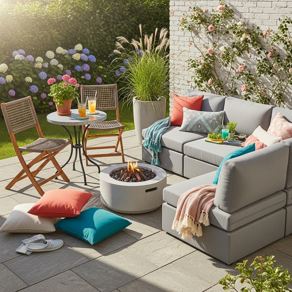 Small patios benefit from flexible arrangements that can be adjusted by season or occasion. Use lightweight furniture so you can easily shift your setup for: