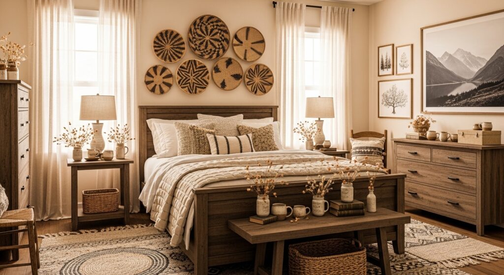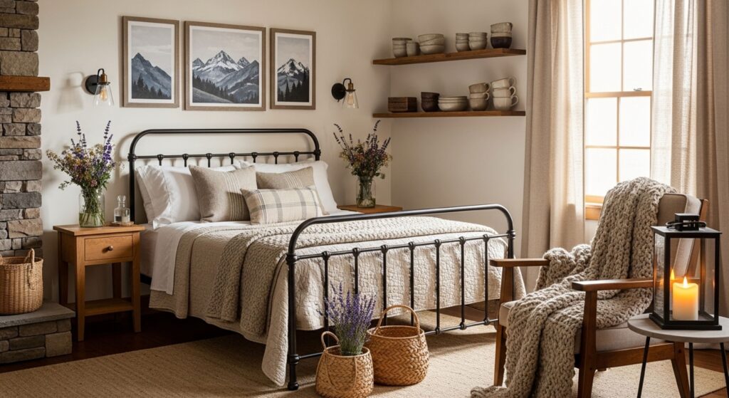 This blend keeps your bedroom stylish while maintaining rustic charm.