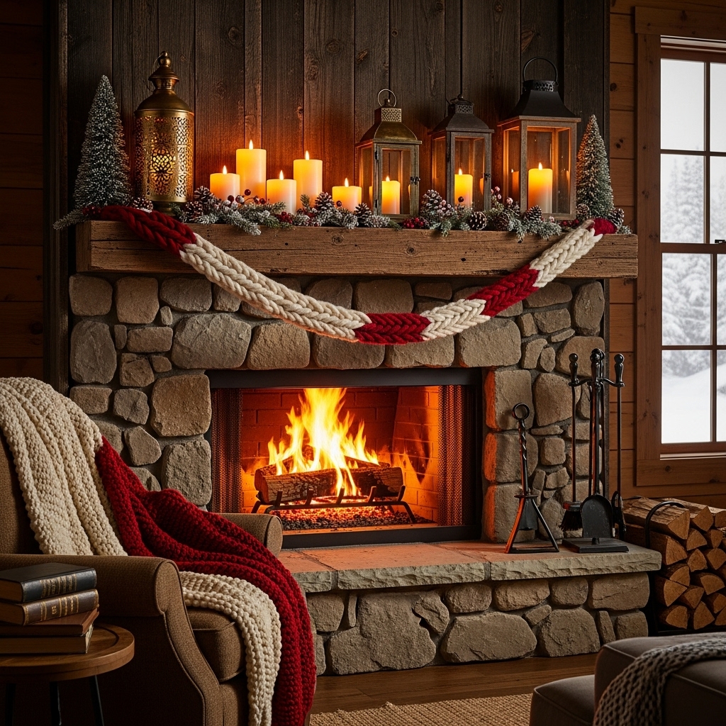 Nothing says winter like a roaring fire. If you have a wood-burning or electric fireplace, make it the star of your decor by framing it with rustic touches like stone, reclaimed wood, and soft lighting.