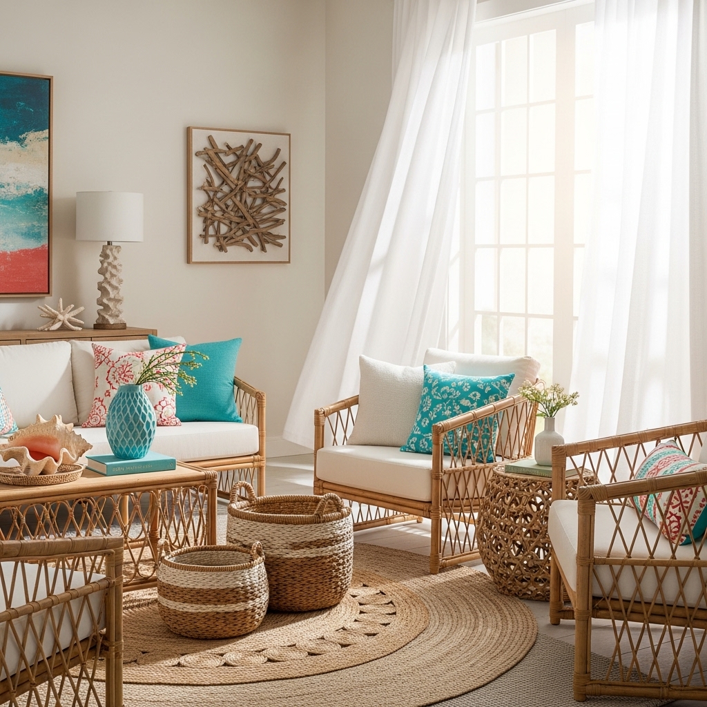 Think jute rugs, bamboo blinds, and woven placemats. These organic textures give your home a breezy, relaxed feel that’s perfect for summer.