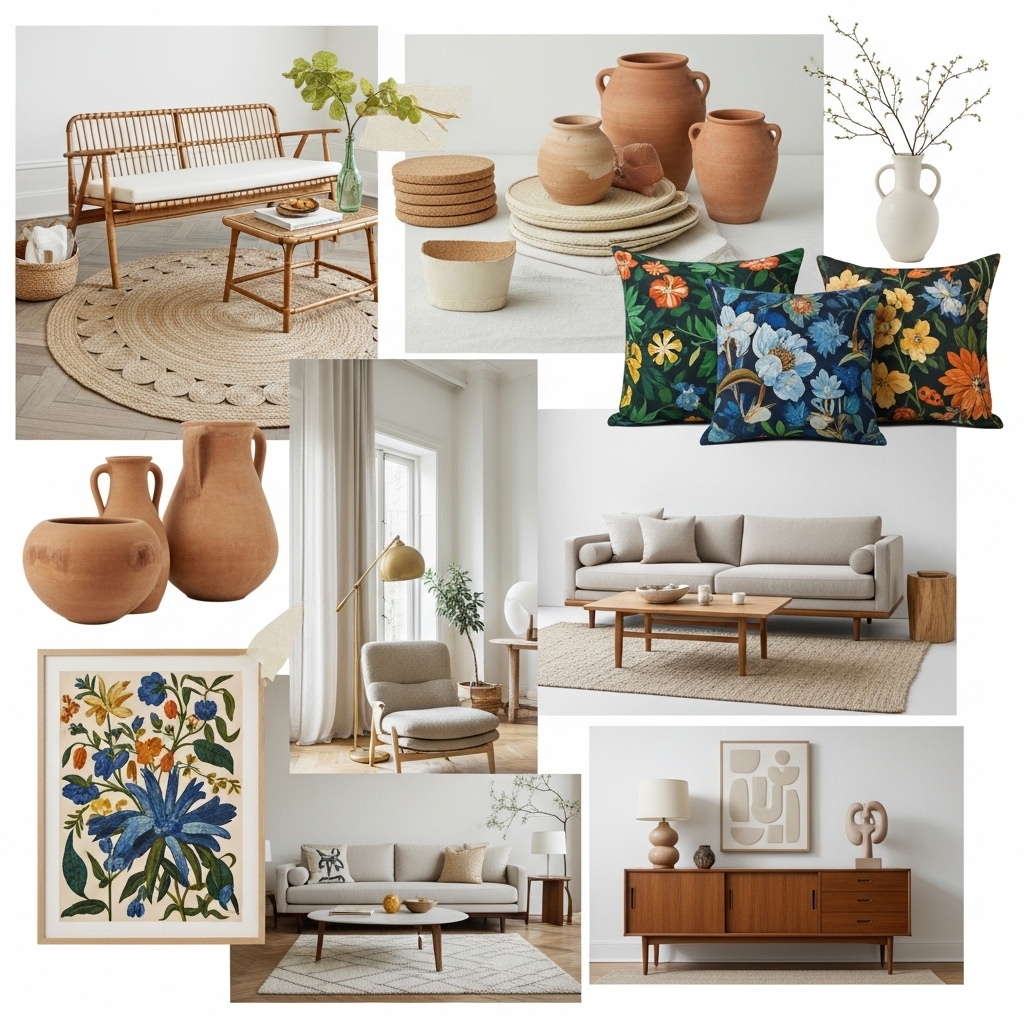 • Earthy neutrals: Warm taupes, clay tones, and natural wood finishes continue to dominate.